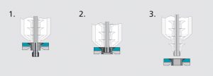 - 작업 시 모재 안에서 리벳 바디 팽창